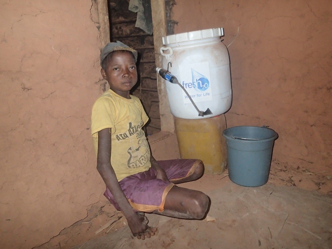 With support from Fresh2o and donors, 85 water filters have now been provided to schools, a youth centre and to some of the most vulnerable households in project areas. For schools, these have been accompanied with 120 litre water containers and, for households, with 50 litre water containers. These were distributed between August and October 2014, and training was carried out at the same time. Field agents ensure frequent follow-up through visits to schools and households. Inspections are made of the filters on each visit and advice given.